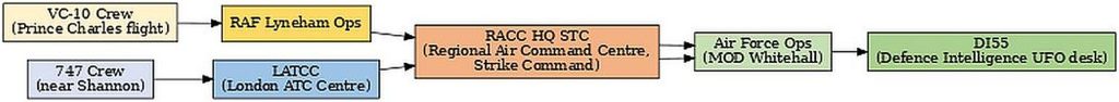 The British National Archives responded with the Ministry of Defense UFO files DEFE/24/1924/1 and DEFE/31/174/1. Based on their response and other archival findings, I was able to reconstruct the entire day, including the notable Prince Charles flight. (A full listing with references is given towards the end of this report.)