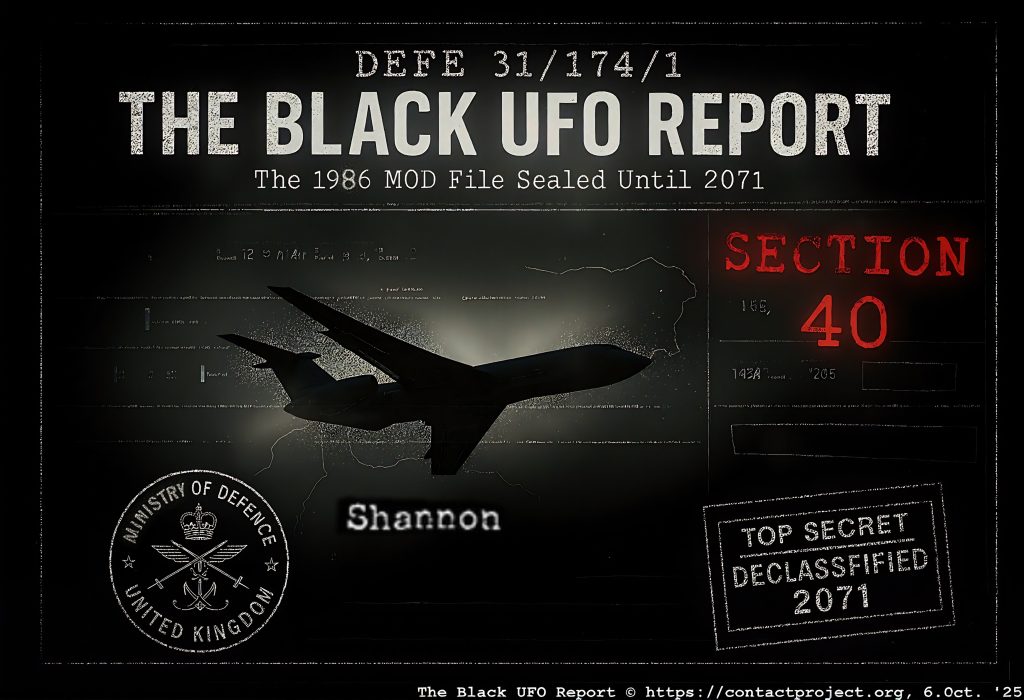 The released MOD papers provide only a partial view of the 23 February 1986 events. Several reports appear in summary form, but critical details are absent, particularly in the so-called “black UFO report,” which survives only as a negative microfilm copy. Strikingly, this document begins at section L, omitting sections A–K where the original sighting description, location, and movements would normally be recorded. This omission, combined with the MOD’s Freedom of Information response confirming that DEFE/31/174 remains closed until 2071 under Section 40 (personal data), strongly suggests that the withheld material includes the full testimony of the RAF VC-10 crew and possibly corroborating accounts from the American 747 near Shannon.